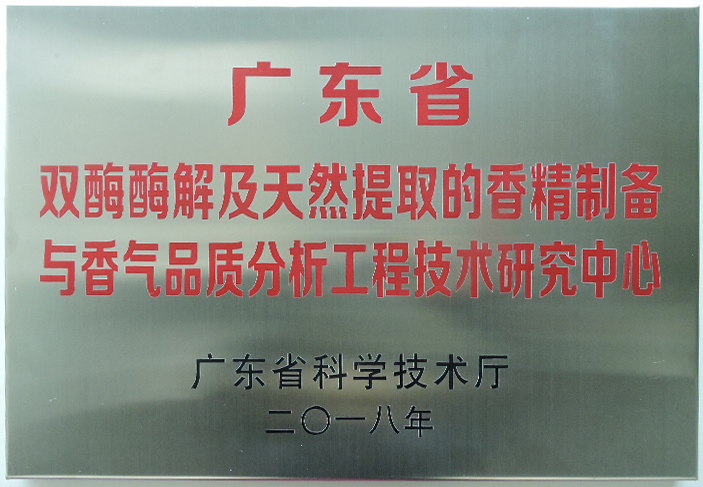 雅迪香料(广州)有限公司通过了广东省工程技术中心认定,获得“广东省双酶酶解及天然提取的香精制备与香气品质分析工程技术研究中心”,由广东省科学技术厅颁发。