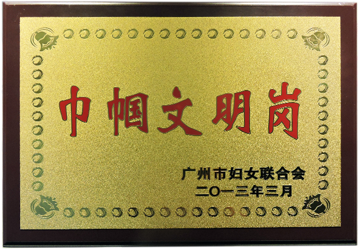 广州市妇女联合会为雅迪香料(广州)有限公司颁发“巾帼文明岗”荣誉牌匾。