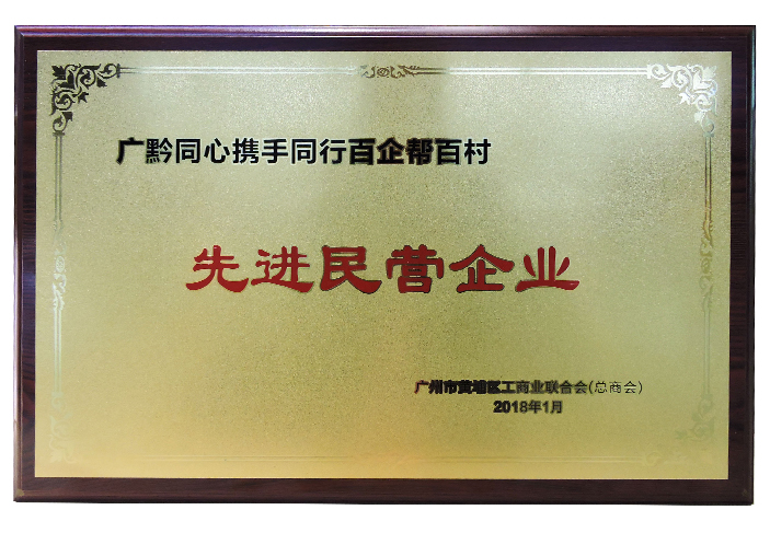 雅迪香料(广州)有限公司获得由广州市黄埔区工商业联合会(总商会)颁发的广黔同心携手同行百企帮百村“先进民营企业”荣誉称号。