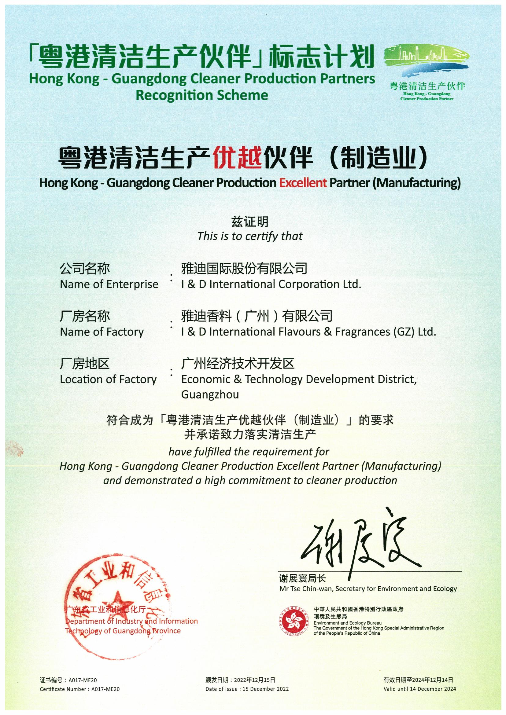 2022粤港清洁生产优越伙伴(制造业)
